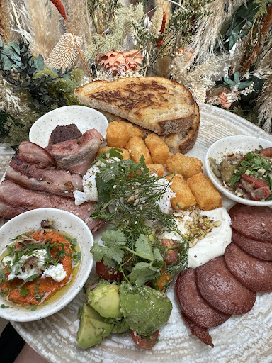 For my first choice, I opted for the Poached Free Range Eggs with a delightful combination of flavors. The eggs were perfectly poached, with a velvety texture that oozed with flavor. The Sonoma sourdough was toasted to perfection, providing a satisfying crunch. The sujuk sausage and Blackforest bacon added a savory and smoky element, while the roasted eggplant brought a delightful depth to the dish. The hash browns were crispy on the outside and fluffy on the inside, and the muhamarra (capsicum) + Persian feta added a tangy and creamy element that perfectly complemented the other ingredients. The whipped labneh brought a smooth and creamy texture to the plate, while the heirloom tomatoes and avocado provided a refreshing and vibrant touch. To top it all off, the tomato chili jam added a delightful kick that tied all the flavors together harmoniously.