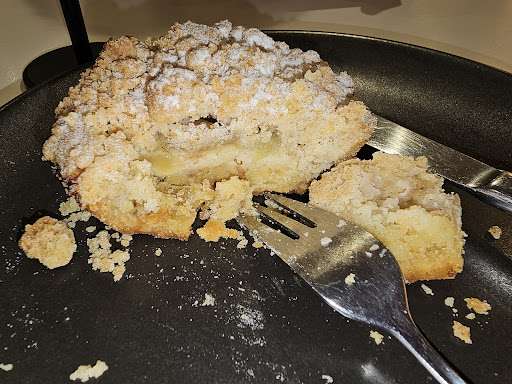 Now for the actual food. I enjoyed their apple crumble. The crust was not too hard, and the crumble was delicious. The coffee, was unfortunately a letdown. It wasn't hot, but lukewarm, and wasn't very flavoursome. It didn't really have a "coffee" smell or taste. Perhaps they didn't put enough coffee. I don't know, but I didn't enjoy it. Had the coffee been good and was served hot, I would have given this place a higher review.