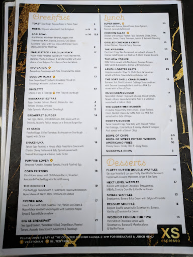 Read moreXS Espresso have a few locations around Sydney. I've tried to visit them in the past but they are usually quite busy, and I have never been keen to wait for a table. Today I went there for breakfast, and I was in luck. I didn't have to wait and I was given a lovely table outside. The menu is modern Australian, with all the expected items; they have sweet options including acai bowls, pancakes, french toast etc. They have savoury options too, like eggs Benedict, smashed avo, omlette and shakshuka. They also have a big range of freak shakes and milkshakes. These a popular on Instagram. Check it out. I ordered the shakshuka, which wasn't really a shakshuka as the eggs weren't baked into the sauce. It was poached eggs in a sugo sauce. Despite not being a shakshuka, the dish was excellent. The flavour of the sauce was amazing. My poached egg did have a bit of egg shell in it, but I just picked it out. Otherwise, the food was great. XS Espresso also serve Campos coffee and T2 teas, which is top notch. The only real drawback, is that it's a bit of a pain that they make customers order at the counter, instead of providing table service. It can get very congested at the counter, which makes it hard for staff to bring out food/ drinks and makes it difficult for people to get in an out of the cafe. The service is efficient and friendly. The staff are very helpful, and willing to make adjustments to menu items. I asked to have the chorizo removed from my food, and they were happy to make the change. Overall, it's a nice place to have a meal and the food...