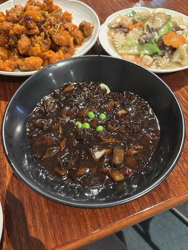 We ordered the fried chicken with sweet & spicy sauce, noodle and soy bean sauce and a seafood and vegetable on rice. All tasted very good especially the noodle with soy bean sauce. Nice thick flavorful sauce.