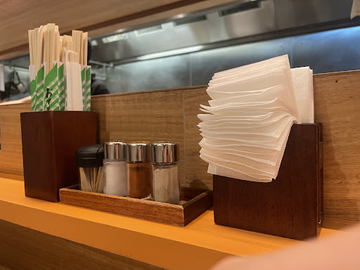 Upon entrance you are guided by the expectedly nice (this is a Japanese restaurant after all) staff to a small bar, where you use a QR code to order, which as always is incredibly annoying, though with Ramen it does have some benefits, as choosing customisable ingredients is much easier now. Your section of the bar has adequate materials for the dining experience, with chopsticks, tissues and three shakers of salt, chilli powder and garlic powder. The place is very clean and the ambience is quite nice and reminiscent of Ramen stalls in Japan.
