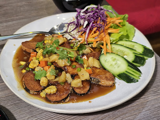 Read moreWow vegan menu. I was with a vegan friend and I thought vegan was bland. I was wrong. I had no idea that vegan Thai dishes were so delicious. Great variety in the menu, classic favourite Thai dishes, and regional Isaan dishes, but I don't know where Isaan is or what their food style is lol. Lovely gentle Thai grandmotherly lady came to the table and invited us to order at the cashier. She had such a calming and gentle energy about her. The staff were very friendly and politely asked how we enjoyed the dishes. I was surprised how busy the restaurant was, the vegan angle works for them. Don't expect bland food at Yod. Can't expect it to be like a pork larb, or som tum salad with proteins, or Thai beef salad, but they are innovative and the food is surprisingly good and fresh. There is deceptive advertising in the menu photos. The photos make the servings look small but the actual servings are huge! I ordered the big salad because the photo looked like a small serving, and my jaw dropped when this massive salad was delivered. I still ate it all as it was yum. Don't expect fine dining at Yod, that's not what this place is about. It is a homey Thai restaurant that serves honest cruelty free food, with an old lady that just radiates gentleness. Go here to have a hearty, guilt free, delicious meal, salve your soul,...