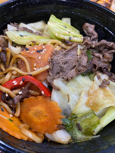 Food - 4 Stars I got a Karage Chicken Noodle Salad and my daughter got the Kid's Bento Box. Her box was huge for the price and packed with lots of things that she loved. It was so big, she wasn't able to fill it all. I thought this was incredible and one of the coolest kids options I've ever seen at a Jap restaurant. My dish was pretty ordinary. I expected my Karage chicken to be crispy, crunchy and hot... instead it was soft, saucy and luke warm. I thought it would come with thicker Udon/Hokkein style noodles, but it came with thinner noodles that I don't enjoy as much. However, despite all this, it was tasty enough for me to finish and a decent price.