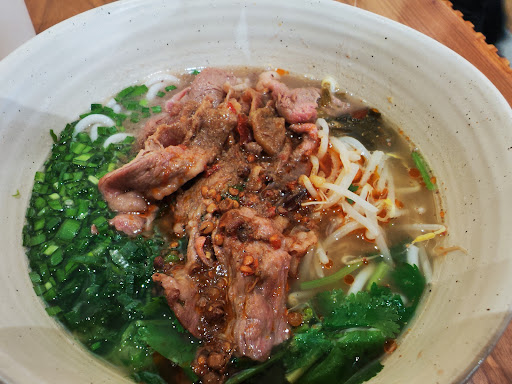 We came here for dinner last Thursday, and ordered the pork noodle special and the Spicy Mala Chicken Rice Noodle. The pork soup base was phenomenal, better than the chicken rice noodle soup. Especially because after several bites of the chicken I realised the chicken was RAW and not fully cooked. When I showed and told the waitress that I didn’t think the chicken was edible, she went back into the kitchen and returned saying the chef said the chicken was pink because it had been pickled… We pointed out that some of the other chicken in the dish was not that same colour… and I asked to speak to the chef. At this point the waitress returned and offered us a refund. This is quite alarming considering I could have had salmonella food poisoning. If you come to eat here please check the chicken. I understand people can make mistakes but I am very unhappy that the kitchen lied to me. It was very busy on Thursday night and my soup was brought out extremely fast…