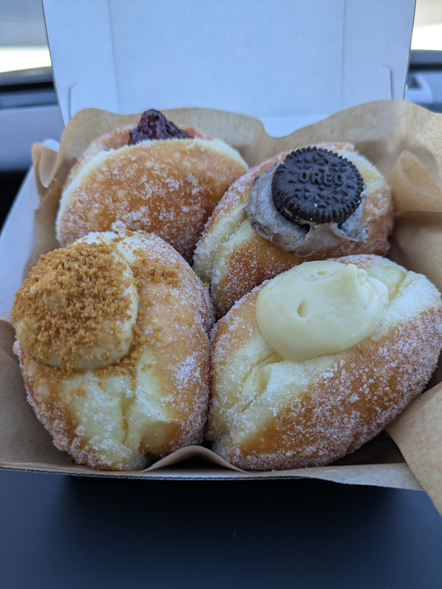 Read moreI heard about Browns Barossa Donuts from a friend in Adelaide, she said they were recently awarded the best donut in SA and they make brioche donuts, so I specifically took a trip out to Tanunda in the Barossa Valley. I couldn't decide which one to have so I purchased a sample box of mini donuts (what a great option to have), I also bought a 6 pack for another friend back in Adelaide. These donuts are delicious, they're not too oily, they are soft and fluffy, and they're literally bursting with delicious filling.
