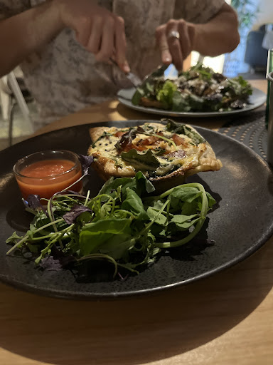 Food choice is wonderful. A good range of pastries, burgers , pizzas, tarts, and desserts. Staff are friendly and happy to please customers. Once ordered, the dishes are delivered hot to your table. Food is made ‘in-house’.
