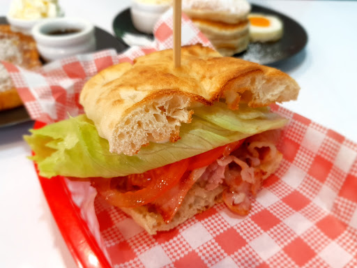 The iced coffee (sans the condensed milk) was great, and my BLT with garlic aioli was perfectly cooked and seasoned. My partner had the pancakes (+ two perfect sunny-side up eggs), a mango and banana smoothie, and we also ordered the french toast to share. The portions weren't ginormous, but definitely enough to fortify us for the day ahead.