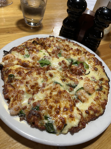 In comes our entrée, we shared a small prawn and bacon pizza which was delicious even though the prawns were frozen shrimps yet still understandable.