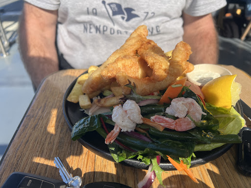 Read moreIf you've read some of the glowing reviews here that state how wonderful this place is, and how warm and welcoming the owner is, I can personally confirm that they are true. My wife and I were visiting family and we were excited to try this place on the water. Twas an especially cold morning with freezing wind, but when we stepped into this cosy little restaurant, we immediately thawed out with the overhead radiating heaters. View of water was so relaxing, especially with the sunlight sparkling on the surface. And just as other reviewers have commented, owner was EXTREMELY upbeat and welcoming and we immediately felt like we definitely wanted to try this place. Wide selection of yummy cakes that can be paired with a coffee for $13 (?) and simple but delicious menu that includes a range of fish and chip options, as well as souvlakis. Tried some fish and chips and a chicken souvlaki. Fish and chips portion size ok in my opinion, but would have liked a bit more on the plate (hence 4 stars for food). But all cooked really nicely! Owner confirmed that, upon request, they offer a great GLUTEN FREE BATTER (cooked in DEDICATED FRYER) for their fish and chip options, and chips are also gluten free. Small portion of salad on side was good but came served with dressing that I wasn't personally that keen on. Keep in mind and maybe ask for no dressing or dressing on the side if you're not a huge fan of salad dressing. Chicken souvlaki was tasty but I personally prefer a souv that is a bit fatter and loaded up with a bit more meat (other reason for 4 stars for food). But all in all, I highly recommend this place and don't think you will be disappointed. And so much appreciation for the owner who goes above and beyond in trying to make your experience a wonderful one. Definitely try...