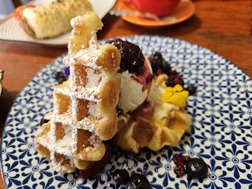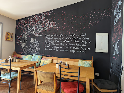 Just to grab a takeaway drink is tedious, on a couple of occasions, only two small tables in the whole cafe and both times have watched staff do everything but process takeaway drinks at snail pace. The place looks drab, run down and just an overload of stuff everywhere when you walk in the door, that attributes to it looking a mess.