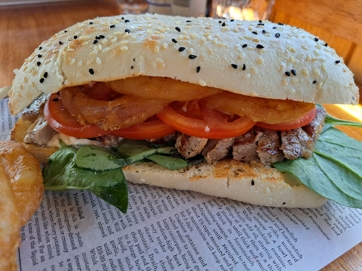 The steak sandwich showed why it earned its place on the specials menu with a pile of fresh toppings pinned underneath soft Turkish bread. The perfectly toasted loaf and the bed of spinach was an excellent foundation to absorb the precious juices from the tomatoes and steak. Such careful attention to the composition of the sandwich made each bite compact with bold flavour. Despite the steak being well done, it was surprisingly tender where the meatiness became the pillar for the other accompaniments to stand on. Even their onion rings shine outside of the sandwich and are done the best way you possibly can: Fried crispy thin with a divine caramelised sweetness.