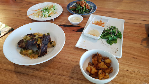 The Taphouse is a large two story building in delightful Mole Creek, with top floor dedicated to accomodation, including a media room with large couches and projector, plus a communal breakfast room (light brekkie included in price). Downstairs is the Taphouse with locally brewed ales (avg price $5 per pot) and a delicious menu with Japanese and Mexican influences. Not your average pub meal, a little pricier, not so much on quantity, but absolutely recommended for quality. We booked direct online and got a $50 discount off dinner, which brought price down to totallly reasonable.