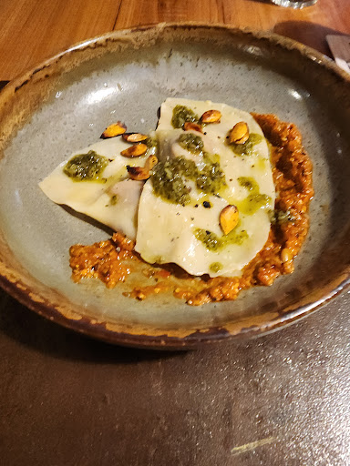 Staff were very friendly and welcoming. Downstairs is a public bar area with kitchen. They have a reasonable selection of meals in the evening, but we only tried the smashed potatoes and garlic flat bread. Pretty tasty.