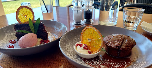 Our meals were outstanding, husband had the Seafood Chowder and I had entree size Seafood Ravioli, both meals delivered piping hot and well presented. For dessert, he had the chocolate ganache with raspberry ice cream, mine….. sticky date pudding, both were to die for.