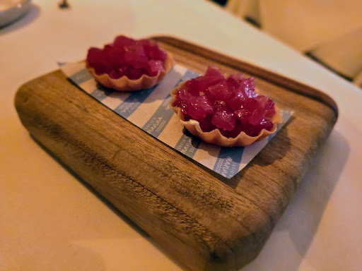 I had the Wagyu Striploin MBS 4-5 with Roasted Cauliflower Puree & Florets and a side of Twice Cooked Fries. Regrettably the Fries were the only truly enjoyable thing present. The Striploin was barely warm and the amount of gristle I had to remove was very disappointing, especially as it had been served already cut in several pieces and so whomever prepared it would have seen the amount of sinew on this steak and yet still thought it was okay to serve.