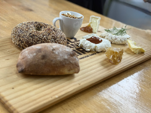 Day 1. The coffee was so creamy and full of flavour. We had the Rip and Dip selection board (pictured) and the scones, jam and cream. The selection of produce was amazing and thoughtfully put together with care and respect the produce deserves. The condiments compliment the dairy products fantastically and really added to the amazing cheese and quark without overpowering. The bagel and bread also were a delight. We were so full and content.