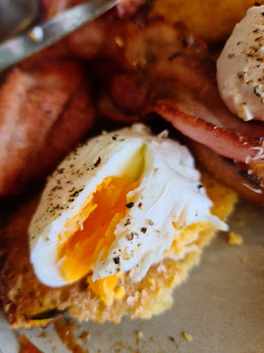Paid for the table so we could leave and realised after I was charged for the returned meal. Main other concern was 2 completely cooked through on the Eggs Benny, yet perfect runny the day before.