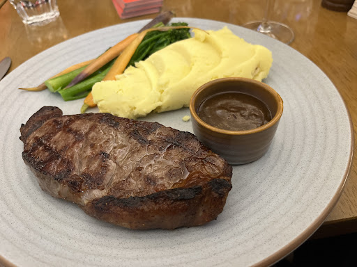 Read moreWe came to The Spotted Cow for the steak but were let down almost immediately. Our waitress, Sam T (as listed on the receipt), told us there were no cocktails and no drink menu. For a venue with a full-sized bar, that was surprising. Even more confusing : no wine at a place selling âpremiumâ steak? My wife checked reviews while we were there and saw that they used to serve cocktails, so something has clearly changed for the worse.