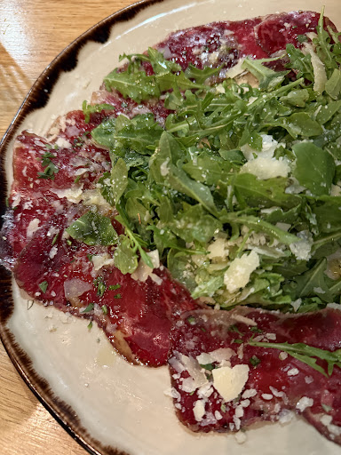 What We Ordered: • Margherita Pizza – Our child loved it! The cheese and tomato sauce were rich and flavorful, and the pizza was well-made. • Seafood in Tomato Sauce (a dish for two) – Outstanding! The seafood was perfectly cooked, with tender calamari, a generous portion of mussels, shrimp, and clams. The tomato sauce was delicious and well-seasoned, and it was served with freshly sliced focaccia—an absolute delight! • Braised Beef in Shiraz & Italian Herbs with Corn Polenta – This dish was fantastic. The beef had been marinated for 48 hours in Shiraz, infused with aromatic Italian herbs, making it deeply flavorful and incredibly tender. The corn polenta was served as crispy sticks, adding a nice texture to the dish. • Beef Carpaccio in Aged Jus – A bit of a surprise! Usually, carpaccio is thinly sliced raw beef, but here it was cured beef instead. It was still delicious, just not what we expected.