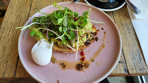 Read moreCame here for a nice breakky on the foreshore and glad we did! The menu had many interesting and delicious options, with breakky and lunch available all day, and vegetarian and gluten free options. The food was delicious! We got the full pond, breakky burger, and salmon tartine. All of which was delicious, eggs were perfectly cooked and runny, kransky was delicious but could use a little longer on the grill. However we did have an issue with one of the staff. Most of the staff were very nice and helpful! But we asked for 2 sides of the jalapeños mayo when we ordered. After our food came, we noticed that the sauce was missing so we kindly reminded our server, as we understand that things get missed and forgotten. After 15 minutes of waiting, and our food now pretty much cold, we realised they forgot again. This time we reminded them at the counter (as we didn't have servers walking past us we could flag down) and were met with rude stares and snappy remarks, which was a little upsetting. We did in the end get our sauce, and enjoyed our food, but the service was slightly...