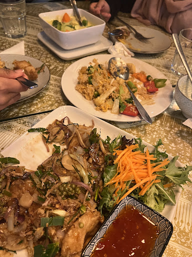 We had one of the most disappointing dining experiences at this venue, despite its reputation for great Thai food. From the start, the service was dismal, with wait staff appearing uninterested and inattentive. The arrival of our meals was chaotic and frustrating: for a table of six, dishes were brought out two at a time, spanning over an hour. The first two meals arrived, followed by another two 20 minutes later, and the final dish came a full 25 minutes after that.