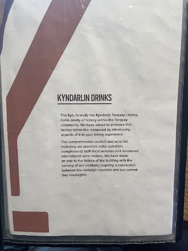 Service was disappointing, we were looked after by a gentleman who made no real effort to connect with us. He rushed through the ordering options and was fairly abrupt when we asked one or two questions (honesty it was no more than that) The venue was very noisy but his lack of care and lofty attitude somewhat ruined the experience for us. The cocktails were amazing, the fit out is lush and the food was ok for the price; don’t expect an after dinner coffee , apparently they are too big and too busy (their words not ours), to cater for those who may not be drinking alcohol - good barista’s are hard to find so they have gone with the no coffee option! Our party all agreed there is something lacking for the type of restaurant it is as it could be totally amazing. Perhaps is the love, it felt like they are going through the motions of being amazing rather than actually delivering an amazing experience. I would give Kyn another go in time and hope that they get it right as Torquay definitely needs a really special venue that delights...