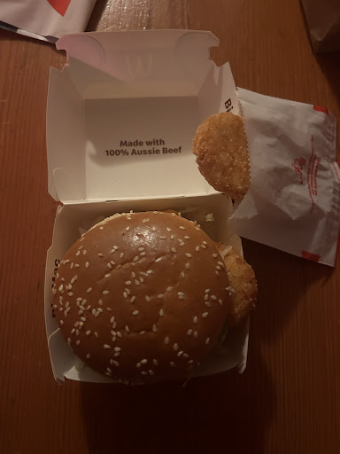 Read moreWorst McDonolds have ever been to. Serve was incredibly slow. All tables and chairs were disgusting with food and rubbish on them. Our intentions were to stay at eat, so I grabbed a dirty tea towel off the counter and wiped my own table. However, when food came out, it was in a takeaway bag, so we didn't end up staying and eating. My hubbyorsered a chai tea also, and we watched the staff place it on the counter and then walk away. We checked the other orders and no one ordered any hot drinks. We proceeded to ask if that was the tea. The same server said yes, I called the number. NO HE DIDN'T. We watched him the entire time from making it to putting it on the counter, to walking away and doing something else. Lies. I ordered the new Cheesy Angus Burger. It is meant to have a cheesy, filled patty inside along with a meat patty and salad. It had NO cheesy patty. Huge let down as that was what I wanted. I wonder if they couldn't have been bothered to cook it and add it and figure that by the time I got to eatting my burger, it would be too late. The bacon was hard, and the entire burger was flavourless. There was a giant dollop of spicy sauce in the burger, which was not meant to be there as it's not the spicy version. The whole experience at this McDonolds is a massive disappointment. Since when did McDonalds get so expensive. I thought all dirty bad for you fast...