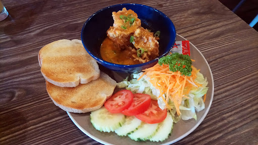 3.5 stars Food: For dinner this visit. Good presentation. Normal portion. No MSG. Attractive photos on dessert menu. Price is acceptable for most dishes. Pad Thai Prawns, $19.9: There are 4 (normal size) prawns, tiny tofu cubs, eggs bean sprouts, finely crushed peanuts, spring onions stired together in Tamarind sauce. Garnish with dried red chili and a lemon wedge. Noodles were Al dente. Normal portion. Normal Thai flavor. --- 7.4/10 Thai Omelette minced Pork, $17.9: served with cucumber slices and Sriracha sauce. t's not fluffy or soft Omelette. Not much Minced Pork. Very thin layer. Very Over-priced for portion, ingredients, culinary technique and presentation. Mediocre home cooking. Flavor was ok. Not recommended --- 5 /10 Mango Sticky Rice, $14.9: it's seasonal. Photogenic! Thinly Sliced mango formed in a rose- pattern on the top of sticky rice. Small portion of well cooked sticky rice. Enough warm coconut milk. Only served with small scoop of Vanilla ice cream and whipped cream. No nutty flavor. --- 7.4/10 Iced Thai Milk Tea, $6.9: ok. Normal portion. Service: same friendly staff. Not busy. Order food and pay at cashier. Served food fast. Tap water (not chilled) was provided. --- 7.2/10 Environment: small cafe, clean & tidy. Very causal setting. ---- 7.2/10 4/2021- 4 Stars: Came for lunch. Service: friendly staff. A bottle of Chilled Tap water is provided after ordered food. Waiting time for food was reasonable. --- 7/10 Food: casual setting. All-day menu with interesting variety of food: Thai food with western twists, Coffee, western breakfast, lunch and fancy desserts. Nice presentation. Good portion. Reasonable price. Good quality. Tasty. ---- 7.5/10 Crispy Prawns Tom Yum Sandwich, $17.9: 2 slices of crispy sourdough, Tom Yum Paste was tasty. The crispiness of Batter Prawns was ok. Salad was really fresh. Thai Lunch comes with rice. Tom Yum Soup with prawns, $16.9: can choose spicy or not. A lot chopped dried chili if spicy option. 5 medium-size prawns in the soup. More prawns than other Thai restaurants, and larger portion, so higher price. Definitely will come back for desserts or...