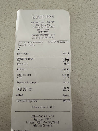 Ordered Fried Bihun (also known as Mee Hoon) that was oil soaked, Chee Cheong Fun that was as thick as wraps and black coffee that has tea infused taste.