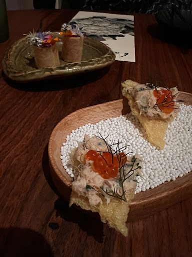 Read moreHad the best lunch after a long time, first of you walk into the beautiful waiting area with fire place and enter the open kitchen dining area had the pleasure to sit infront of the kitchen. Staring with the snakes the mushroom parfait, tomato tart and garden fig seems like a mouthfull but as soon as you bit is disappears with amazing flavours. Then comes the scallops with a subtle taste perfectly cooked trout balancing it with sauce vierge and corn sabayon. The a duck cooked to perfection giving it the time it deserves to rest with fortune Cabbage, Pickled ruhbab and wolf berries gives it a good combination of richness and freshness. I was already full at the time but can't say no to the Harcourt baked apple with kanaf pastry and cardamom ice cream to calm your sweet tooth with yum and crunch. This is what you get when you have amazing management and chefs that get good/local produce to do justice with it. Thanks to the owners who work there and greeted me, head chef Hunter and amazing sous chef and a great host who gives the wine to need to appreciate the food. Had a great time Thanks guys and...