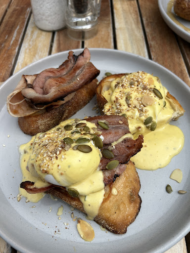 The eggs were poached to that magical place between soft and jammy, the hollandaise was silky and tangy without being overpowering, and the bacon? Smoky, crispy, and just begging for a return visit. But letâs talk about the portion size â huge. Think multiple slices of perfectly toasted sourdough with the ideal crunch-to-chew ratio, all stacked high with toppings that could satisfy even the hungriest brunch enthusiast.
