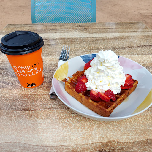 ย ย ย Read moreVisiting from Adelaide. Went on Saturday (waffle, with strawberries, maple syrup and cream) liked it so much went again on Sunday (Hawaiian hotdog). Best food! Good coffee. Good prices. Fantastic service. Lovely atmosphere. Lots of young ones serving and doing a great job. Sit in the park and they bring your food to you. Might need to wait a bit for your meal if they are busy but it's worth it. Generally though, I thought it was actually quite fast. I'm...