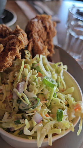 I chose the Deluxe Smash burger minus the rabbit food and I have to say it is one of the best burgers I have ever eaten. My wife had the Brass 3 piece, a yummy crumbed chicken with a cracker of a sauce (I know, I tried some). Fries and salad sides, prepared to perfection garnished the plate.