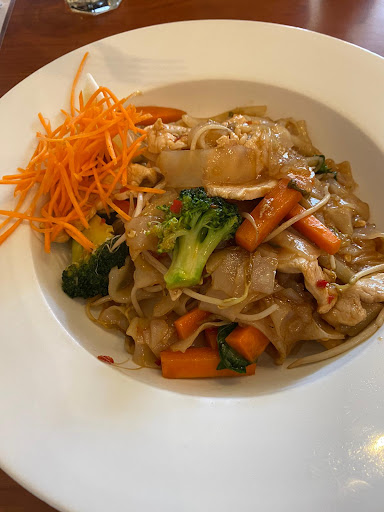 The service was not good. When the tom yum soup arrived, they didn't even bring the brown rice that we ordered with the dish until later on. When they brought the noodle dishes out, they didn't even come with utensils. The only utensils that were set on the table were forks and knives! How do you expect someone to eat noodles with a fork and knife?!! So unauthentic.... Fork and knives at a Thai restaurant!! What more, they had several staffs there and only a few other customers, but they were slow to attend to us. Then, as we were just about finish our meal, they seemed to be in a hurry to collect our dishes for some reason. One of us was still drinking the tom yum soup, but they collected up the other dishes anyways. And in a pitiful attempt to be polite they asked if we were done with the soup and rice even though they had already taken away the fork and spoon!! If we weren't done with it, how do you expect us to finish it without utensils?!!