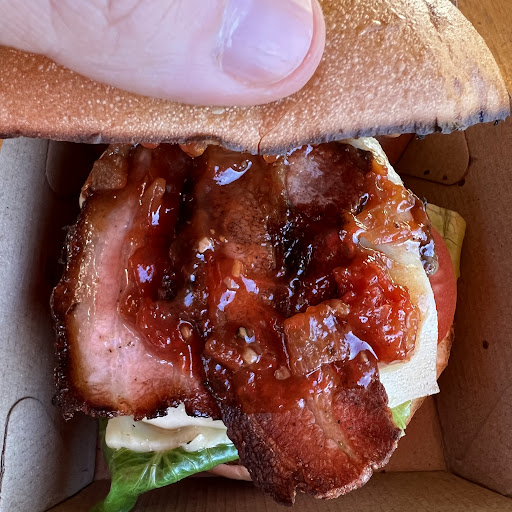 WAY too much caramelized onion that takes over the flavor of the whole burger. the patty seemed, well lackluster. bacon was cooked very well, tomato and lettuce was super fresh, the pickles should have been on the side. blue cheese was overpowered by the onion unfortunately.