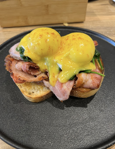 For food, we ordered two eggs Benedict—one with bacon and the other with ham—along with a truffle mushroom sourdough and a smoked salmon delight. Each dish was freshly made and delicious, truly a treat for the taste buds.