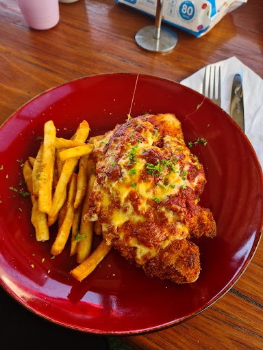 But it wasn't just the music that impressed me - the food was outstanding too. I tried the Parma, and it was absolutely delicious. The chicken was cooked to perfection and smothered in a rich tomato sauce and melted cheese. It came with a generous serving of chips and a side salad, which made for a well-rounded and satisfying meal.