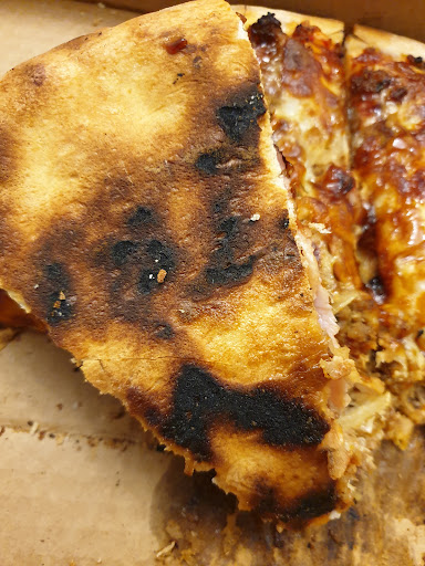 The meat lovers is described as tomato, cheese and ground beef. This should have been one of many red flags we missed. We added chicken and bacon to bump up the meat portion of the pizza. It tasted like boiled mince meat. Utterly revolting. It was also burnt to a crisp on the base.