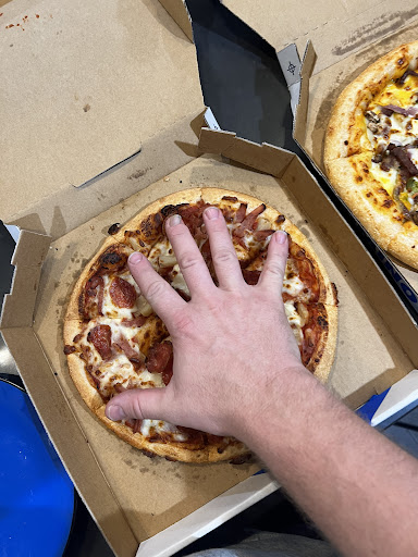 Read moreWalked in with hungry children. Had seen flyer about deals at home, but couldn't be found in store. Stupid sizing arrangements, certain size for certain flavor and different prices. One child ordered Hawaiian there either pepperoni, they came on different sizes so now we have arguments, he got a bigger one. There was maybe 1 cm difference. Meatloaves was in large, wouldn't have called it large, fraction bigger than 5 dollar range, @ $11 something wasn't worth more than twice the price. Miniscule controlled ingredients, really felt ripped off. To add insult to injury wife purchased meatloaves from 1 block away, and or 2 pizza shops away, and hers was farmand bigger and better. Thought there was only one pizza shop. The leaflet menu's don't have pricing, guess to stop you walking, and multiple different ranges makes unnecessary difficulty of the event. Brite and clean quaint waiting area. Electronic progress screen kept children occupied. Pizzas was Scrooged, wasn't...