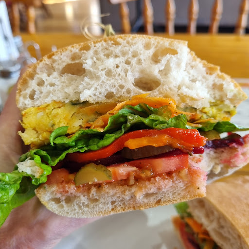 My wife and I were blown away by this place. It appears to be a simple little cafe with a small menu of basic items: salad rolls, jaffles, omelettes, pies, muffins, cakes, etc. We initially weren't very impressed, but we decided to order anyway because the food was a good price. I'm so glad we did. My salad roll was the best I've ever eaten, with a surprising citrus note that worked really well. My wife ate a delicious bacon and egg jaffle. Both were flavoured with native australian plants.