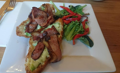 Solid breakfast - Welsh Rarebit, raisin toast and good coffee. Heaps of bacon for the 6 year old. Will...