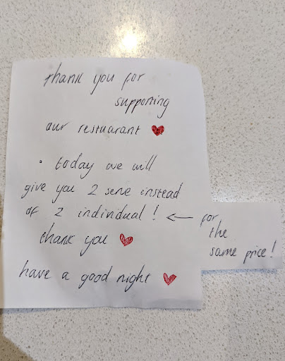 Read moreThe restaurant was like ice block and I had to ask for some heating to be put on . There was 4 of us and our meals all came out over 15 minutes but not a full order for any of us so we couldn’t eat our meals like normal . It took 5 mins to warm a plate up in a microwave. I observed a take away order take 30 mins from receiving 1st part of their order .. 30 mins until the rest of his order. The two young girls although polite when spoken to did not at any point make eye contact with any customer at their tables at no checking if we were needing anything or was our meal...