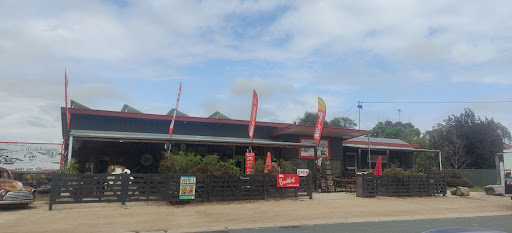 Well what a lovely surprise! Looking for somewhere to turn round in Gunbower, we noticed plenty of people and more cars stopping at an unpretentious venue with character! Not ones to miss out on anything interesting - we went in! Wow! Baking was underway for the day, and a steady stream of fresh pies, pasties and an amazing array of sweet and savoury treats were making their way out of the kitchen as we waited for our morning coffee. While we waited we admired the amazing array of vintage cast iron, and cast iron and enamel, cookware. We spoke to the chef whose collection this is, and discovered it's been many years in the making. Lovely people there! In the room next door, there are more fascinating collectibles for sale. We went and explored Gunbower after this visit, but were unable to resist and went back for pies at lunch...