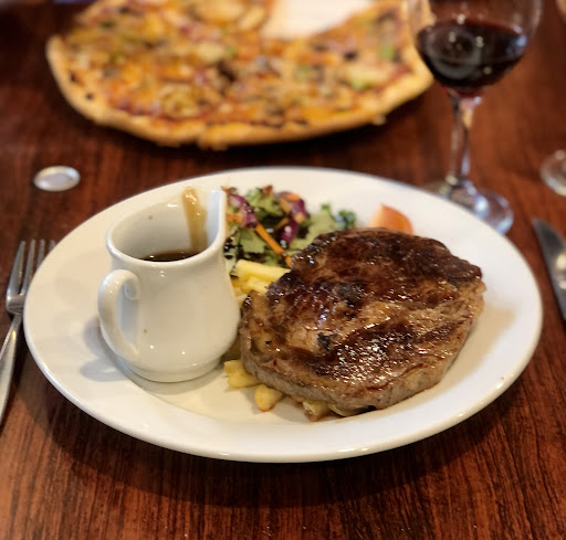 Read moreHalls Gap has an abundance of accommodation and places to dine - from Air B&B’s, motels, lodges,caravan, camping, restaurants, cafes and I’ve stayed in and eaten at almost all of them. In fact I remember camping here in 1965 and hearing my first ever koala bellowing (to attract a mate). Here I am tonight all these years later in a town that suffered dreadfully through Covid with lack of patronage and later when it opened, lack of staff. Tonight we tried #hallsgaptavern which looks somewhat dated from the outside but don’t let that fool you. On a Monday night, the place was busy with diners. Chris, the owner, bartender, server takes your food order and he’s an all round great guy - reminds me of the typical Aussie man who has a heart of gold and knows how to deliver good customer service. My partner ordered a scotch fillet steak (medium rare) and it came out perfect. I mean perfect! As a fussy steak eater, he was rapt that 300kms from the heart of great Melbourne food, Halls Gap held its own. I ordered a vegetarian pizza which I’d ordered the night before at another local eatery. Yes I know, I’m not vegetarian but it’s my favourite pizza. OMG - the size, the toppings, the flavour superb. Living in Melbourne we can choose from gourmet pizzas and diverse range of bases and toppings, this was a down to earth, back to basics, deliciously tasty pizza and a large portion size. To accompany our meal, Chris recommended a bottle of Mt Stapylton Shiraz and again, great choice which apparently an award winner in the region. The ambience has a very rural and endearing feel. It’s what I love it about eating locally. Wholesome food. Fabulous service. Thank you Chris and your team for a memorable dinner. Parking available on site. Disability access. Didn’t check the bathrooms. Dining outdoors available but watch for the kookaburras that’ll cheekily fly down and snap up some of your food. Kangaroos plentiful in the paddock next door. Cockatoos and Corellas abundant. Well...