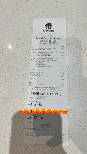 I was doing menulog delivery yesterday. While I did the delivery and I get notification for new order from hungry jack at 5.52pm and I was arrived at store 5.55pm. When I arrived the food still not ready. And the staff just say their busy at the moment and I understand that. After 10minutes wait and see the customer that made order while I’m was waiting there already get their order. And I ask again the 2 girls give me same excuses. And I lost my patience for wait any more longer after 5th I ask them and they say a same excuses. 40minutes I was waiting there and they ask me to wait again. Are you guys okay ? Just because I was doing delivery that doesn’t mean you can treat people like that. I only get pay for $8 per order and you guys acted like I get pay hourly like yours. Don’t ask me why I didn’t unassigns the order because Menulog not same like the others delivery app. You need to contact support and have a reason why you want to unassigns the order. Menulog was asking me to wait there because I will get reimbursed pay for delay. And I already the second driver that Menulog send to the store for collect the order. 40minutes wait and end up get pay $4 for wasting my time after I begging Menulog to cancel the order so I can start received new order. To whoever that made order I feel sorry for you. I don’t know how long wait until customer get their food. I walk out from 6.37pm and customer made his order...