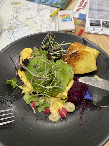 Read moreI appreciate the effort they put into the menu ie no seed oils or refined sugar & the cakes display is fun! I had the keto breakfast which as you can see was just a small amount of scrambled eggs & some avocados…(halloumi was a $6 add on.) The presentation of the food was beautiful! My husband had the avo toast and it was SUBLIME! So if you’re going for breakfast-GET THAT! The scrambled eggs on all 4 dishes were way over done but we did smell toast burning before our food was brought out so maybe the chef was distracted 🤪 I like my eggs soft & just cooked through, these were dry & actually chewy. The coffees were ok, they could have been hotter & stronger & guys- please make the same effort in making a takeaway coffee with as much love and art as a dine in because we all notice & can taste the love (or lack of) there’s a sign saying 50c off for byo take away cups but we weren’t given the discount…not a big deal but if you advertise it, get the staff to remember 😅 Overall an enjoyable (if not pricey) breakfast. Wouldn’t go for the coffee…still on the hunt for an amazing one...