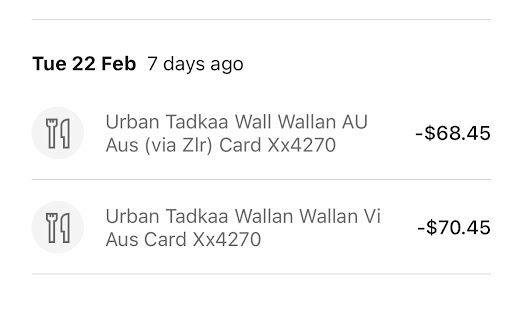 Read moreSo unfortunately and unbelievably frustrated and angry see photo for evidence. We returned to the restaurant today after being charged twice by them. See photo for the double charge evidence. We paid online on Tuesday the 22 but were made to pay again once we arrived at the restaurant. They swore at the restaurant tonight that they had done the refund through Apple Pay 2 days after this payment. After checking once returning home we found no evidence of what they said. We are so disappointed as this was some of the best Indian food we had found but after this dishonesty we will never return!!!