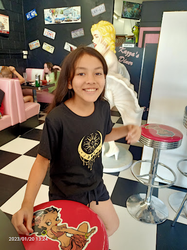 Great place to stop and eat, the food was quick to come out, the staff were very friendly and attentive but did not constantly come over to check in which was nice so we could enjoy our food. The price was so good especially the milkshake and we asked for two cups to share and they practically gave us two milkshakes for the price of only one, very generous! The decorations are very thought out and very much resemble the diners in America! The was a good range of burgers, they were simple but still very tasty, my husband and I did think we could’ve just shared one burger instead of getting two and the chips were so fresh and the oil must have been very new they tasted delicious! This diner is not something you come across in regional Victoria which was so nice to experience, keep up the great work Kaz and your team! We hope to be back soon for those churros we couldn’t fit...