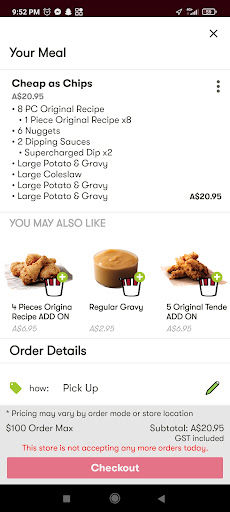This location is new so I’m hoping with time things improve. But my husband and I went to this kfc last for the first time since opening and ordered 2 box meals. We waited over half an hour in the drive through to get cold, old chips with no salt (after asking for extra salt), a hair in my burger, bacon added to my burger (not a huge issue for me personally but what if I was a halal person?) and no wicked wings which they swapped out for 1 tiny tender. Overall it was just cold, you could tell it had been sitting around for a bit and just wasn’t very good considering the wait time you’d think because they were so busy everything would be super fresh.