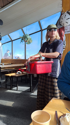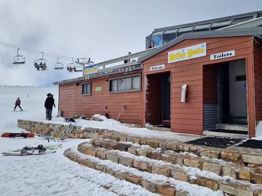 All I have to say is "get the hot jam donut, get the hot jam donut, get the hot jam donut, get the hot jam donut" that's right, get yourself four hot jam donuts (at least) because that literally is the best thing on the entire mountain, including the skiing and the views. I would usually dock points from a place for trying to sell a can of soft drink for $6 a piece but I have turned the other cheek and offered forgiveness after tasting the sweet ectasy of the jam donuts coupled with the surprisingly good coffee. The staff were all, always in good moods and the man who looks a bit like Santa (in a good way) who was the glassie was particularly jovial. It's a modern day tragedy that the beginner skiiers can't make it to Kofflers and are relegated to eating at that cafeteria but whadyagonna do bout it, am I right?...